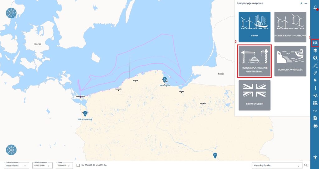 Aby wyświetlić te dane, należy w geoportalu SIPAM wybrać kompozycję mapową Morskie Planowanie Przestrzenne: